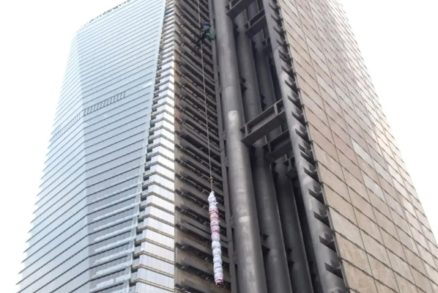 Dos activistas escalaron hoy, 15 de septiembre de 2022, la Estela de Luz ubicada en Paseo de la Reforma, a la altura de la Puerta de los Leones del Bosque de Chapultepec, en la Ciudad de México (CDMX).