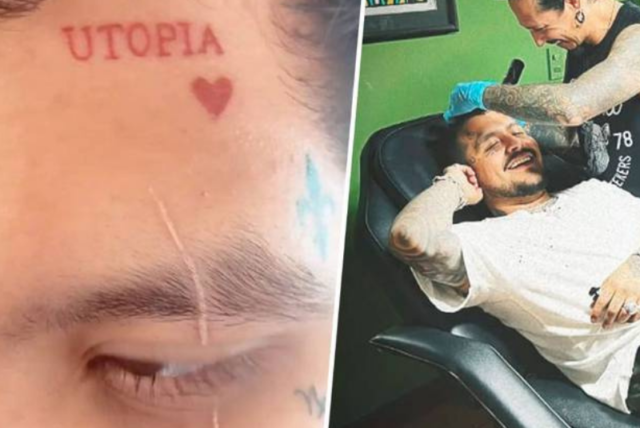 Fue su tatuador, Christian Araya, quien reveló los detalles de la modificación que hizo al cantante y compositor en la frente, donde en noviembre de 2021 se había grabado en letras rojas la palabra ‘Utopía’ seguido de un corazón. La palabra refiere al título del segundo álbum lanzado por Belinda en el año 2006, el cual recibió un reconocimiento de disco de platino por vender más de cien mil copias en el país.