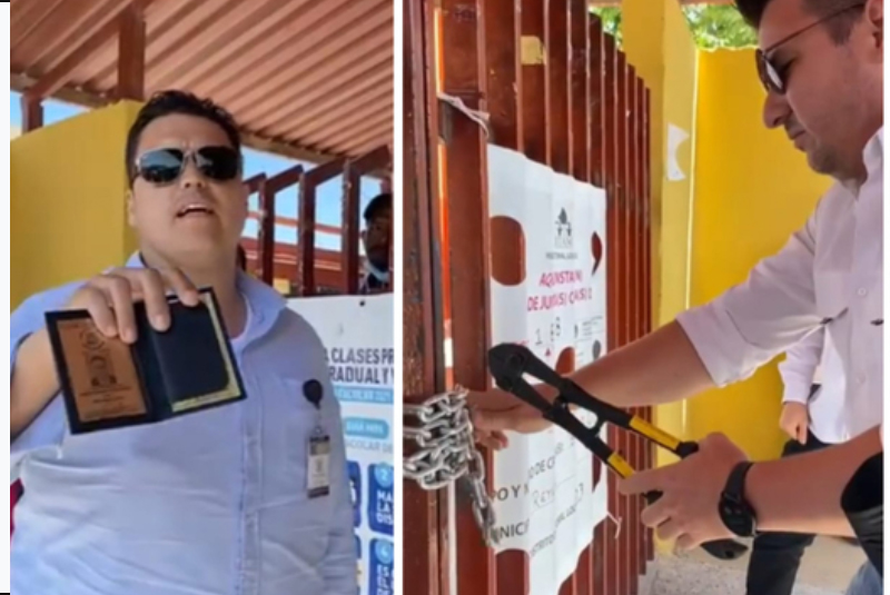 El legislador acudió con su equipo de trabajo y constató que las puertas del plantel educativo donde se instaló la Casilla Electoral, estaban cerradas con cadenas y candados.