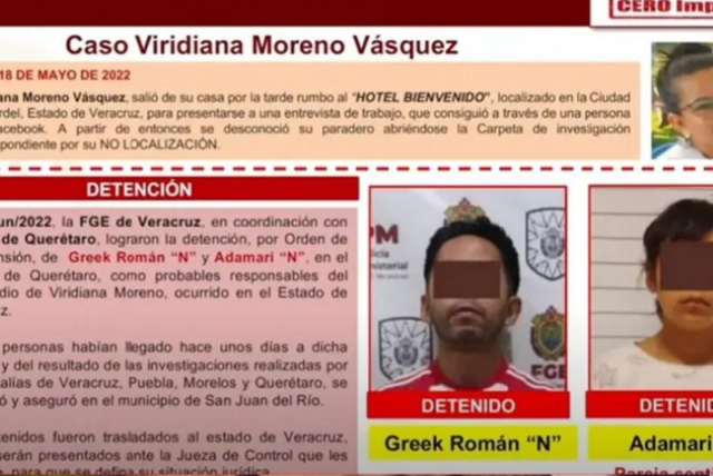 Señaló que tanto Greek “N” y su pareja Adamari “N”, habrían llegado hace días a Veracruz, “dejando atrás una estela de hechos delictivos en Veracruz, Puebla, Morelos y Querétaro, por lo cual ya hay una orden de aprehensión en Morelos por feminicidio”.