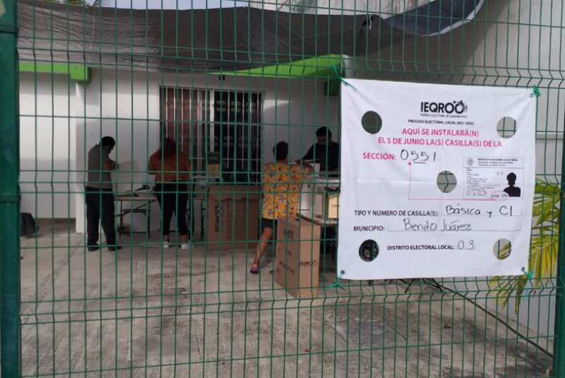 En Chetumal, el Consejo General Instituto Electoral de Quintana Roo (Ieqroo), en sesión permanente recibió el corte de las 9:15 horas del INE, en donde indica que solo el 39% de las casillas habían sido instaladas en Benito Juárez.